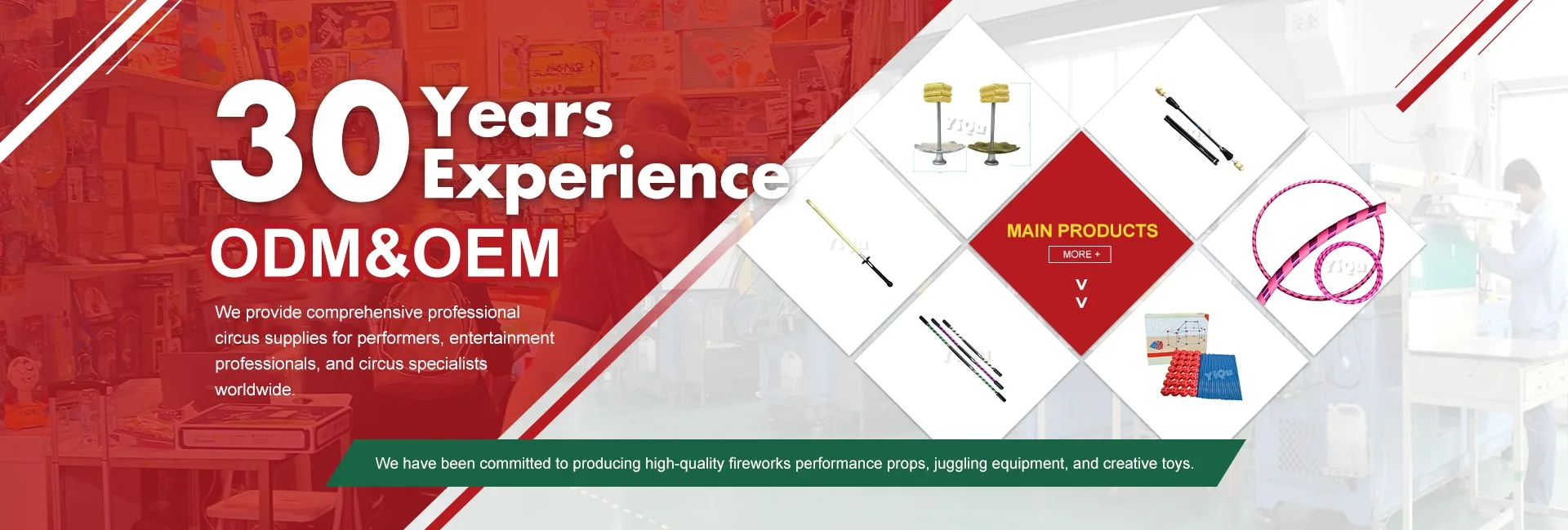 Yiwu Yiqu is a manufacturer of premium juggling equipment, fire performance props, and novelty toys & games. Specializing in fire poi, LED poi, fire juggling tools, and flow arts props—including hula hoops, devil sticks, and diabolos—we offer a comprehensive range of professional circus supplies for performers, entertainers, and circus professionals worldwide. Where fun, fire, flow become art. For 30 years, we've crafted premium fire performance props, juggling equipment, and creative novelty toys that blend safety, durability and artistry. Our heat-resistant tools and playful performance gear – trusted by beginners to pros – are handmade by master craftsmen, with each piece individually tested. We don't just make props; we perfect the art of fire, flow and creative play.